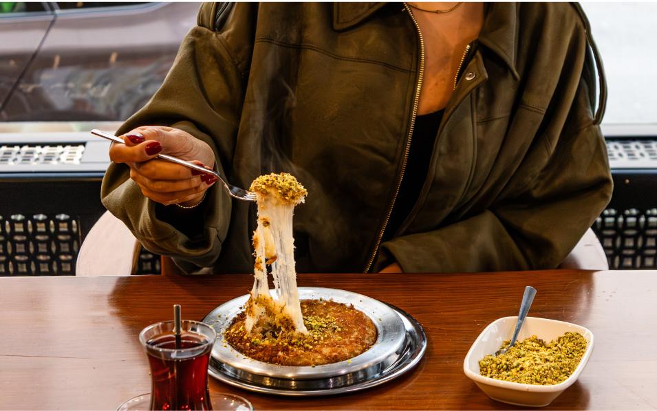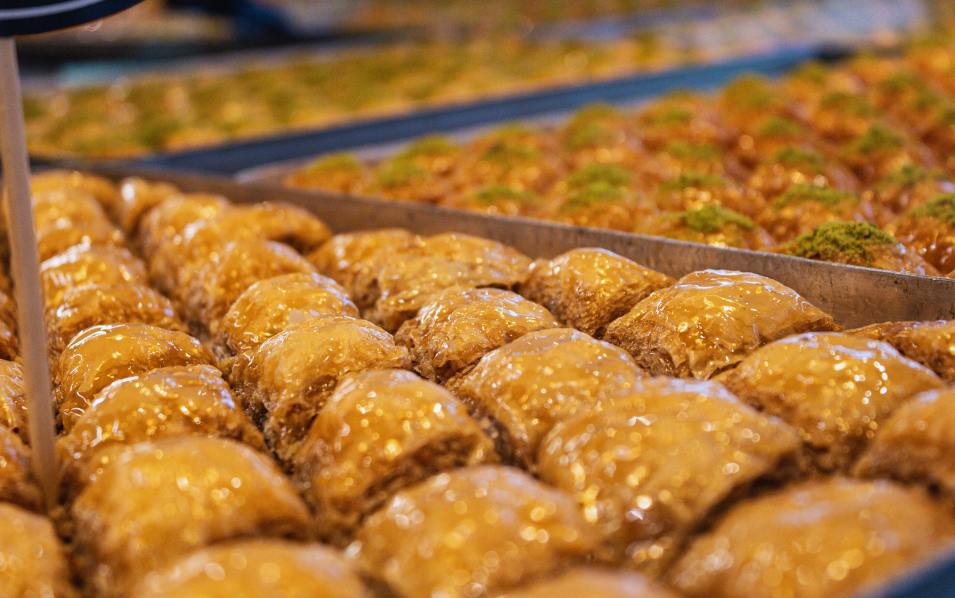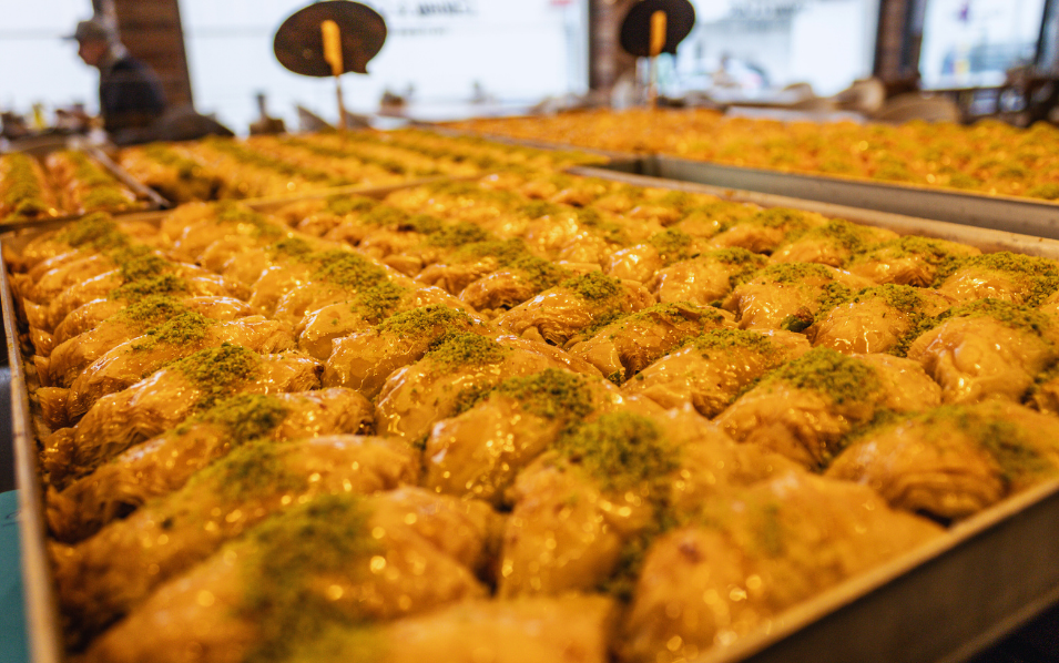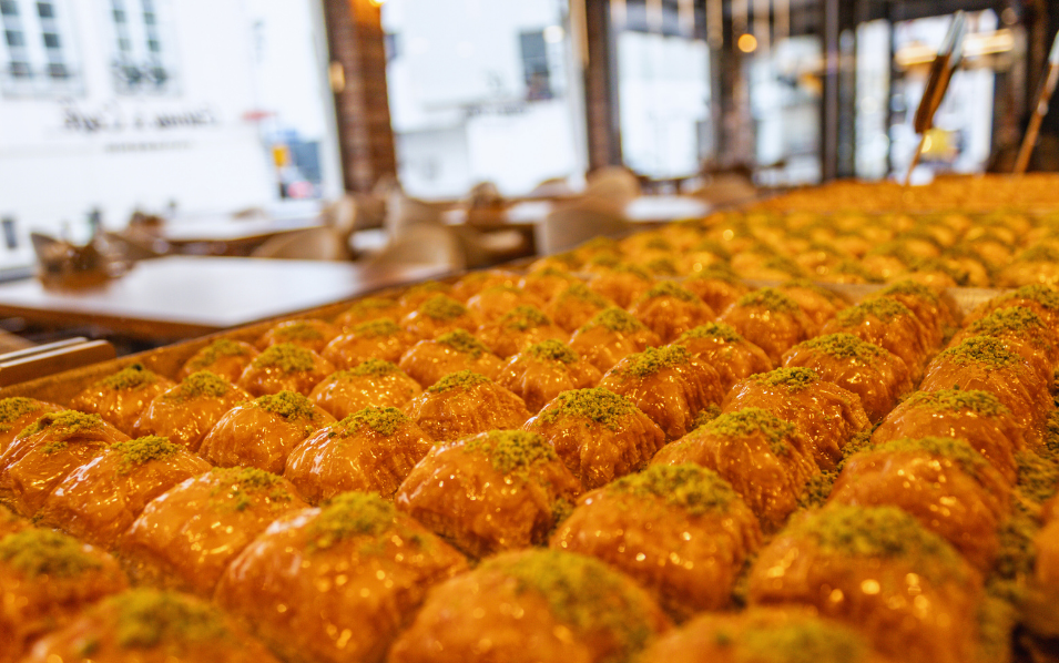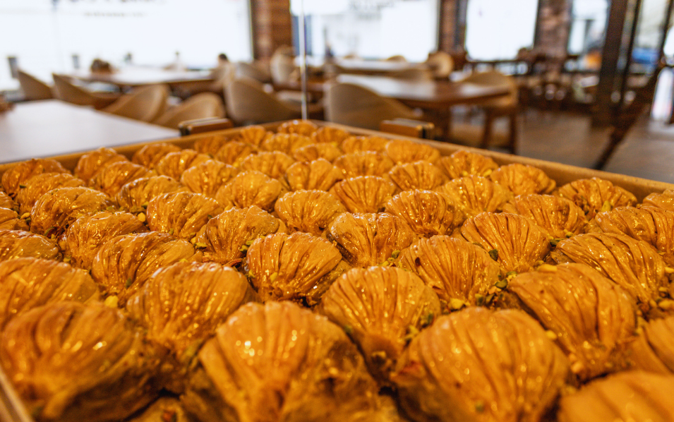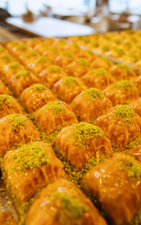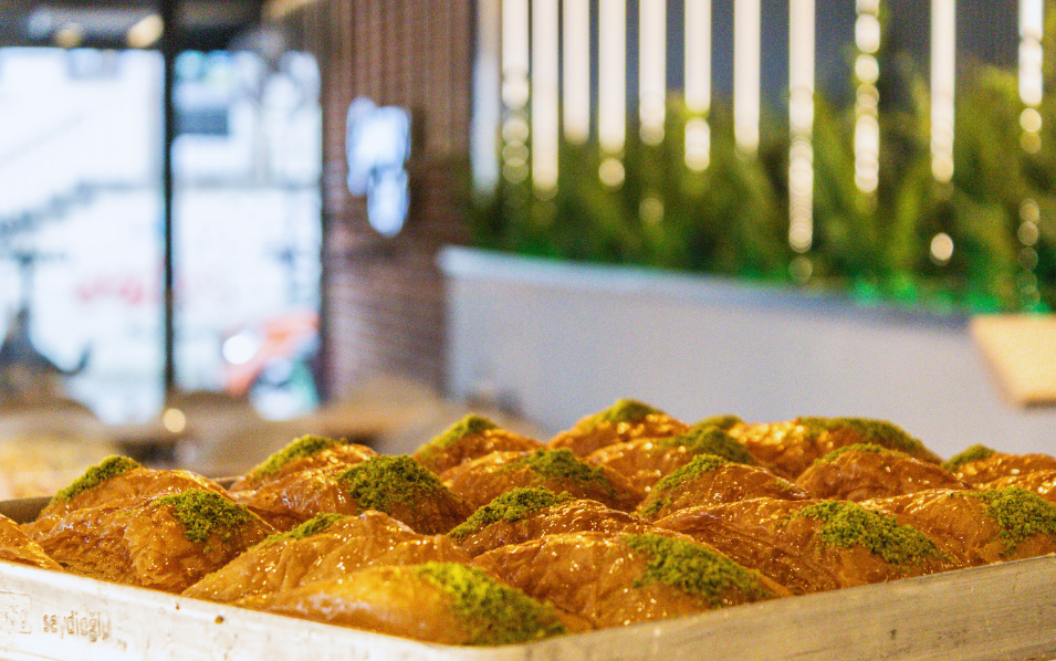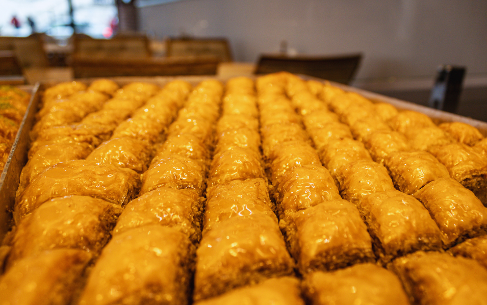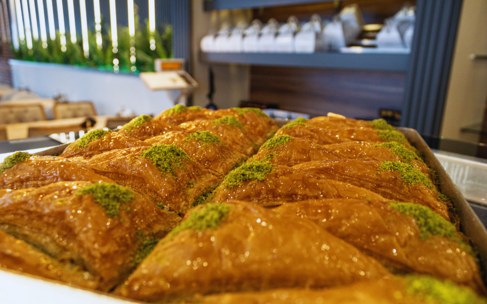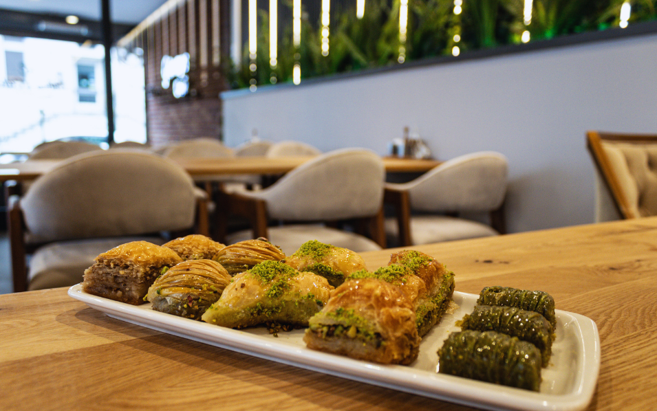 Genießen Sie frisch gebrühten Kaffee, türkischen Tee und handgemachte Baklava – kleine sowie herzhafte Genussmomente für zwischendurch oder zum Mitnehmen.